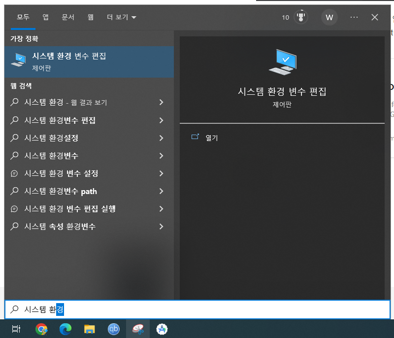 git을 설치한뒤 시스템 환경 변수 편집을 해줍니다. 하단 윈도우 버튼을 눌러 검색을 해도 되고 내PC > 속성 > 고급시스템설정 > 환경 변수를 선택해주면 됩니다.